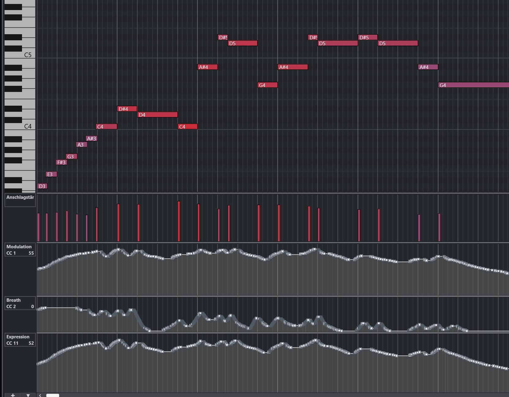Composing control for modulation, expression, vibrato (breath), was made with my new developed spectroFOX MC1 (USB MIDI controller for composers)!