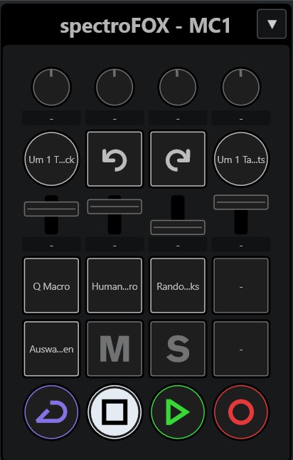 For example, when you press "Stop" long, you activate mute. When you press "Cycle" + "Stop" together, you execute the humanize macro. All buttons are freely configurable in the target software, such as Cubase.
